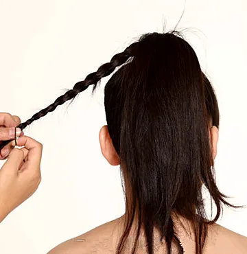 Step2:接着将马尾分出来一撮,编成麻花辫,不要太多,刚好最好。