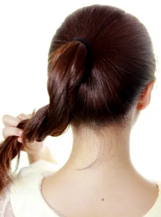 步骤二:将头发扎成你一个马尾,将马尾扭成发辫。