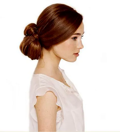 优雅盘发效果图:将长发松散的盘在脑后给人感觉十分温婉柔美,低低的发髻更是高贵优雅,十分彰显气质的一款迷人发型。