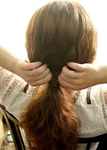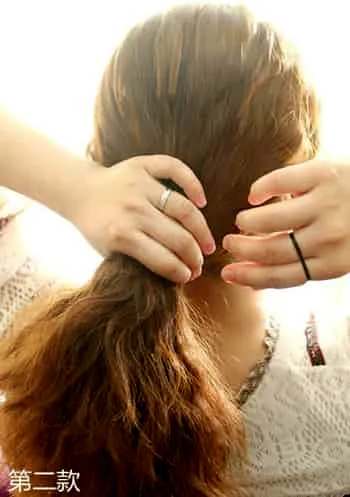 Step2:在马尾的中间挖一个洞,稍微拨开就好,不要太松。