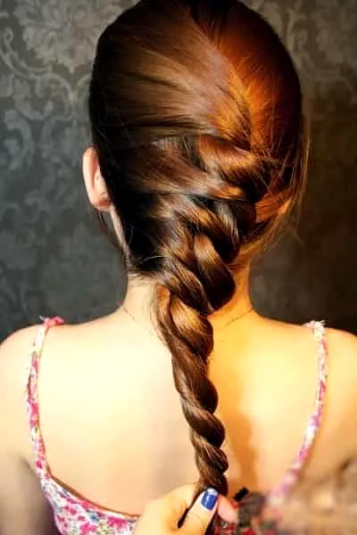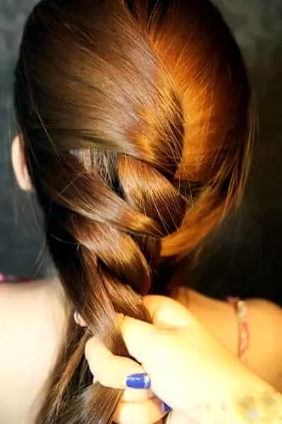 步骤6:按照着个方式一直编织至发尾,扎的时候一定要抓紧呢。