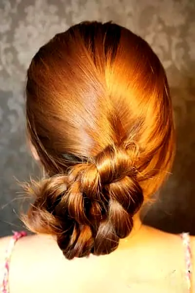 步骤8:在将拧好的头发,盘在后脑勺中间的位置。
