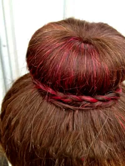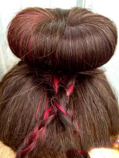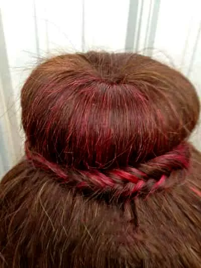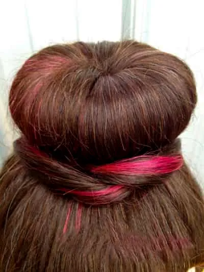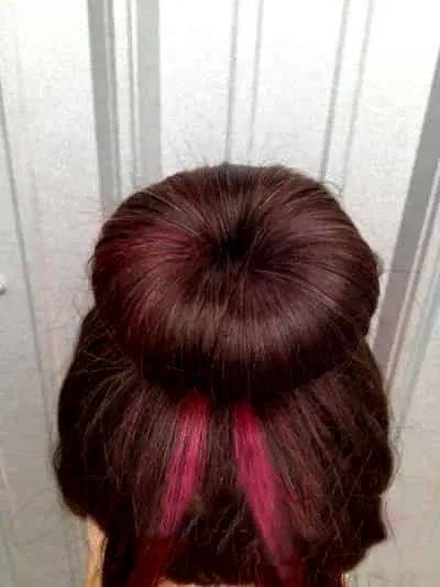 步骤三:用散下的马尾把盘发器均匀覆盖好,**头就完成了。