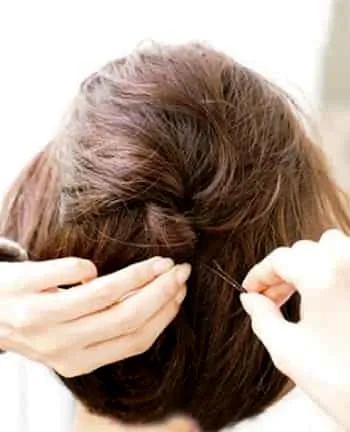短发扎发步骤二:将脑后耳际线位置的短发往内收,用发夹固定住发尾的部分。
