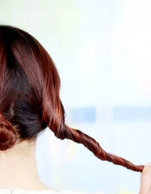 盘发步骤三:右侧的头发也按照同样的方式扭转。