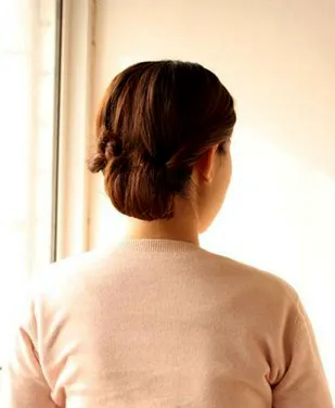 步骤六:头发绕进去再挽出来的效果。