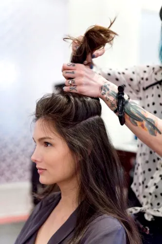 第一步:将头顶头发梳起,用发夹或皮筋固定住,后面再来处理。