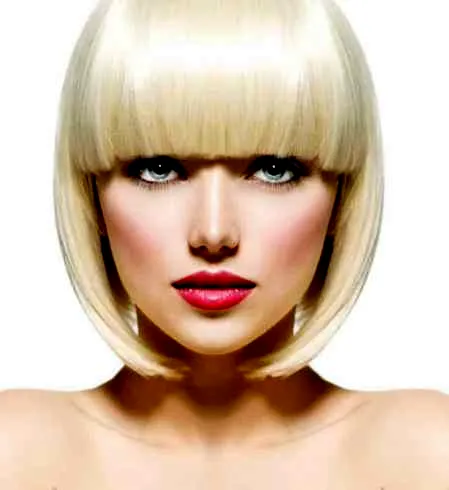 这款短发偏向于BOBO头的设计,不但清纯迷人而且又俏皮**,内扣的发尾设计,完美的修饰了**脸型,打造出精致的完美瓜子脸,平刘海的设计衬托出了立体的五官,时尚而减龄。