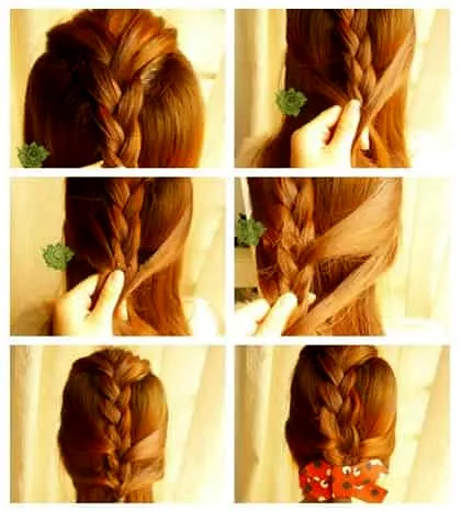 Step1:首先将刘海全部往后梳,呈一个倒三角的造型然后开始编制三股辫。