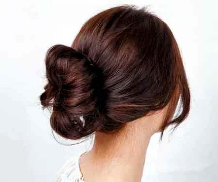 将第一个发束缠绕成为蓬松大发髻,也是用U型小发卡固定就这款盘发发型了。
