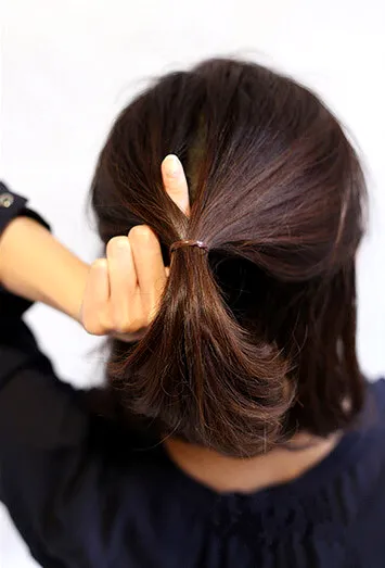 将上半部分头发绑成马尾后从中穿插一个洞。