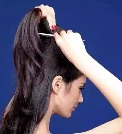 STEP5:用发卡将头发固定好以后,再用梳子的尖头将后脑勺的头发向后挑,