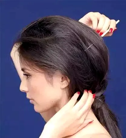 STEP3:从下方新取一股头发继续盖住上面的头发。