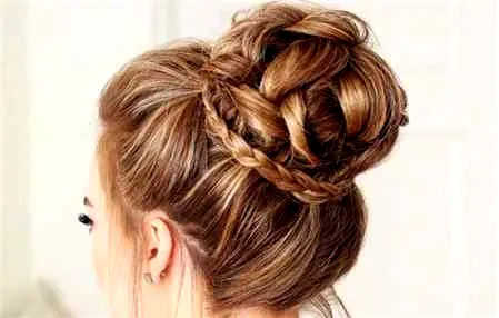 先在头发上喷上定型喷雾,然后如图用右边头发编一个鱼骨辫至耳后,用发夹固定。从右耳耳后将头发一直向内卷卷至左耳耳后,用发夹固定。将左耳前方的头发也简单收至左耳耳后,与后方的马尾相遇,缠绕在其上,最后用发夹固定。