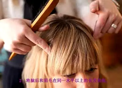步骤二:将脑后和眉毛在同一水平线上的头发拉起来。