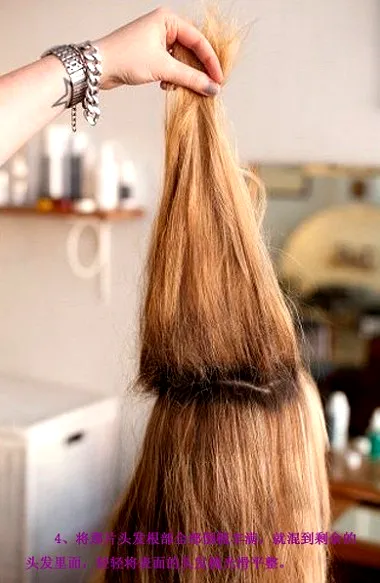 步骤四:将这一片头发全部倒梳刮蓬松之后,就混到所有的头发里面,然后轻轻将表面那层梳平整。