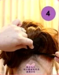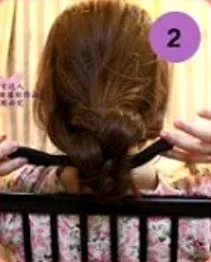 步骤五:用橡皮筋固定好拉过来的头发。