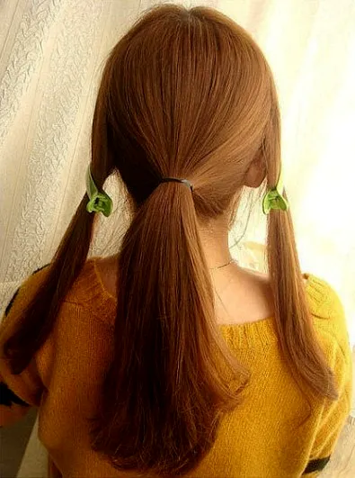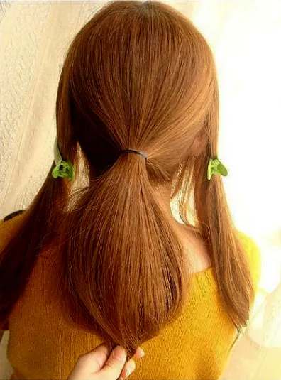 步骤四:用手捏住马尾的尾端,拧转几圈,之后效果如图所示。