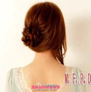 背面效果图:慵懒性感的蓬松感,清爽的花苞头,甜美可人,很浪漫迷人的约会发型哦!