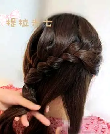 步骤三:如图所示,取与前面同样发量的发束,继续往下编。