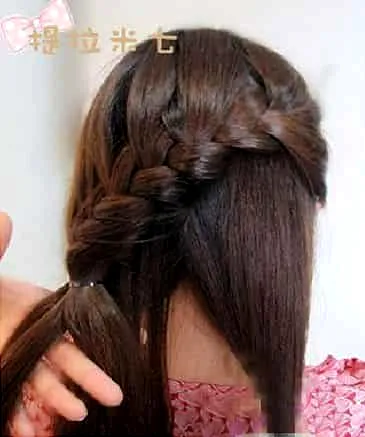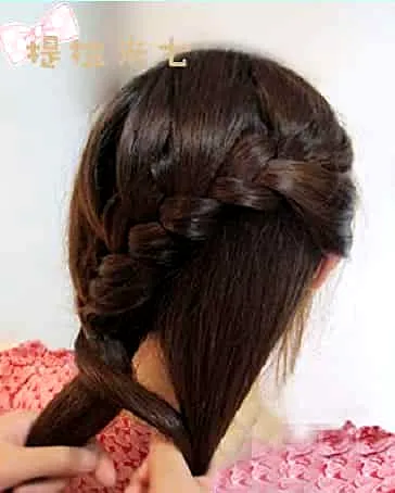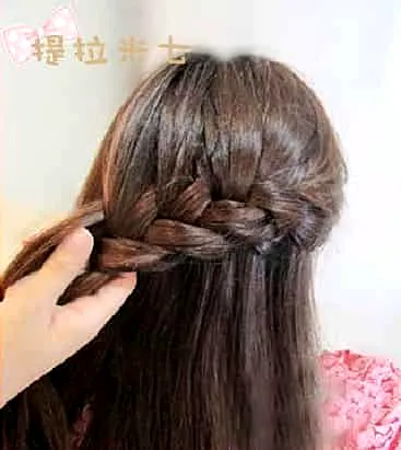 步骤十:与左边的头发汇合到一起,这就是鱼骨辫的编法啦!