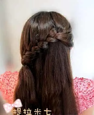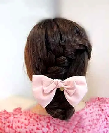 发型效果图:斜着的辫子浪漫唯美,加上粉嫩的蝴蝶结,甜美感爆棚!赶紧来学习!