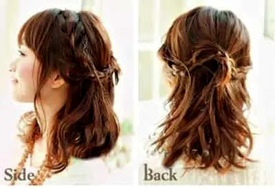 甜美公主发型:这款小淑女的麻花辫最适合想变成邻家小女孩的MM了,随意的取一些头发变成麻花,松散一些就可以了。