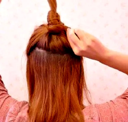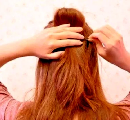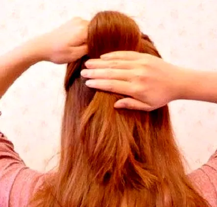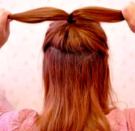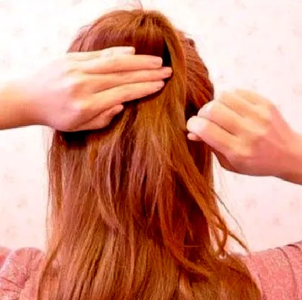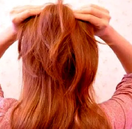 步骤二:用左手撑住上层的里面,尽量让马尾头发弯曲。