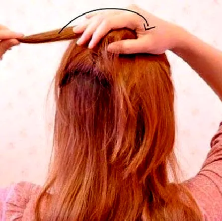 步骤二:用右边这股头发将左边这股头发缠绕起来,左边头发要拉直哦!