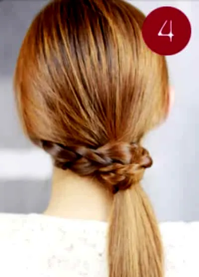 step 3、将编好的麻花辫缠绕在扎好的皮筋上。