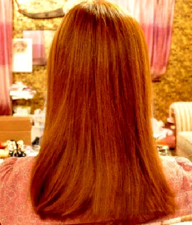 步骤一:模特是一头棕黄栗色中长直发发型,先把头发梳顺放后背待用。