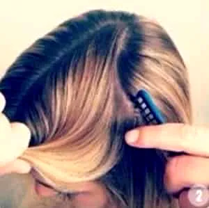 步骤二:拿一把齿度比较密集的梳子,先把左边额头处取一小束头发,右边也是一样。