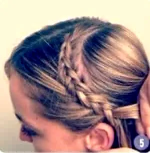 步骤七:右边的头发也是一样,一直往下编,从耳朵处开始叠加发束。