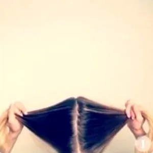 步骤一:模特是一头金**的长直发,当然要是卷发的MM也是可以的,我们先把头发中间分开。