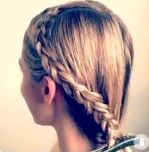 步骤八:左右都编至脖颈处的时候,就把后面剩余的头发一直往下编,编成三股辫。