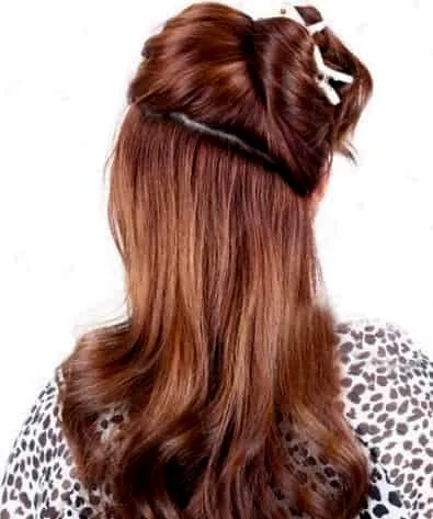 步骤四:现在我们来固定,用小黑夹固定住,让发尾自然下垂就行了。