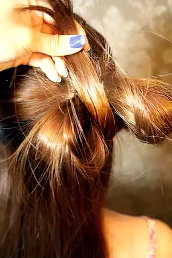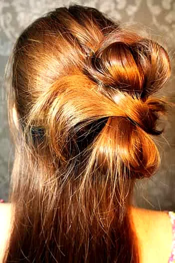 步骤四:把余下没有拉出的头发,从底部由下往上穿过中间部分。