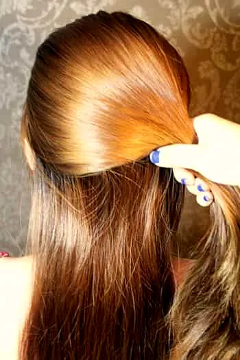 步骤二:从左至右的在头顶处取出一束头发,斜着抓在右侧。