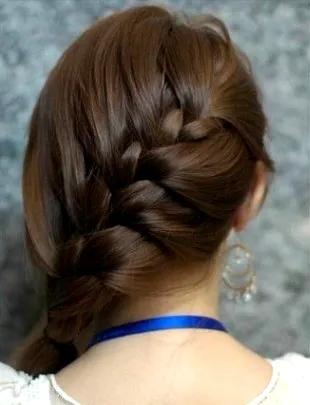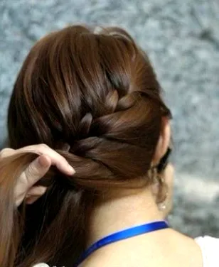 步骤四:编下来后,就把剩下来的头发全部以三股辫的方式,编好,不要编太紧,随意点就好。