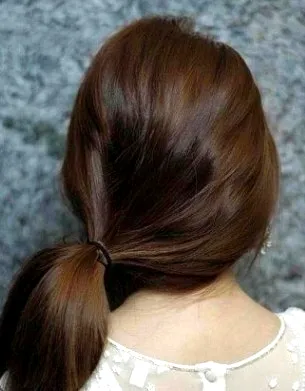 步骤六:现在我们就开始编第二款,将头发松松的扎在左边一侧,不要把马尾全都拉出皮筋,留一点,注意扎的时候要往上抬一些。