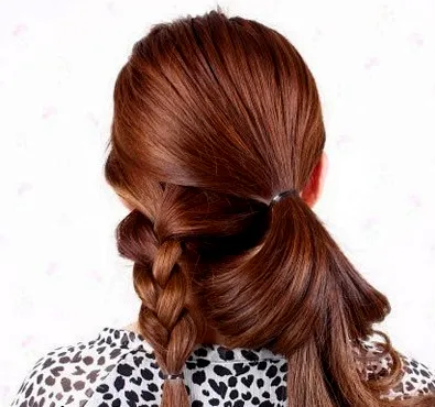 步骤三:图二,扎好马尾后,取一小束头发绕在马尾的皮筋上。