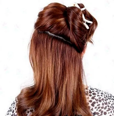 步骤六:绕好后,取黑色的一字夹固定好,让发尾自然垂下。
