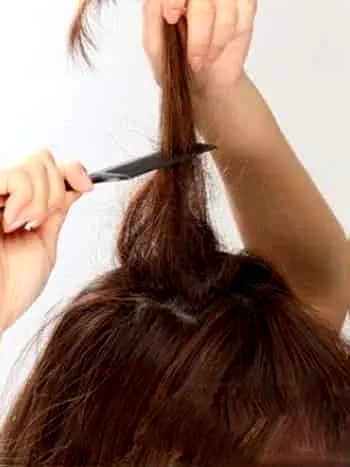 步骤一:首先取头顶的发束,用梳子逆向刮松,营造头发的蓬松感。