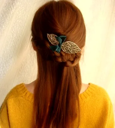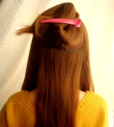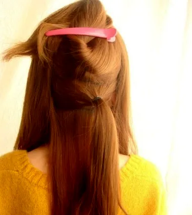步骤五:最后用黑色的一字夹,固定好扭转的发束。