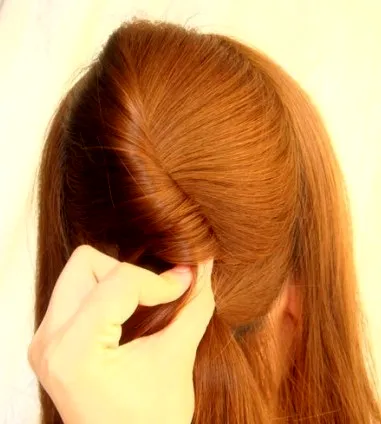 步骤三:然后把头顶处的头发散下来,抓起由左往右扭转一圈。