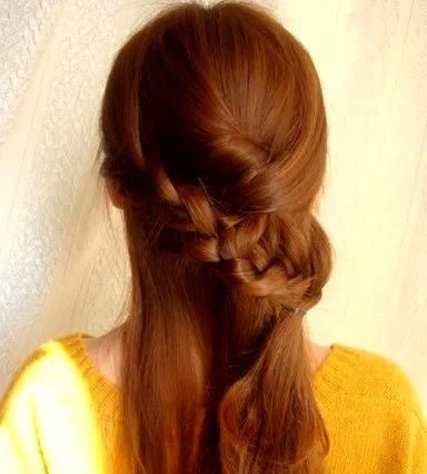 步骤十:每编一层,就往右边加一股头发,一直编到右边没有头发为止。