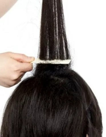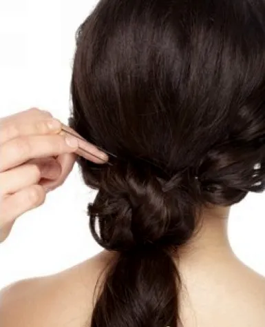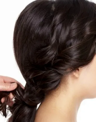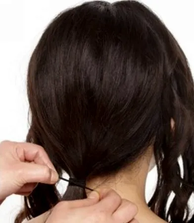 步骤五:把两侧预留出来的发束拉到后面,在扎好的马尾皮筋处,扭转起来。