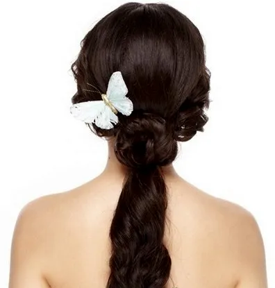 完成效果图:一款创意马尾花苞头盘发就完成了,别上白色的蝴蝶发饰发夹,清新脱俗仙女气质。