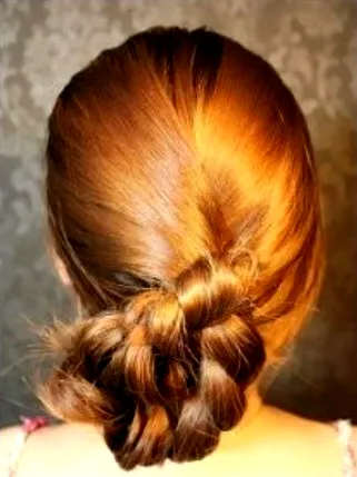 步骤九:然后开始盘发,把编好的辫子沿着中心点,绕一圈,把发尾藏进辫子中去。