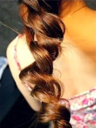 步骤八:图片放大,这就是编好的辫子效果,女生要看清楚噢,其实很简单,不会的女生也可以编成麻花辫,或者就简单扭转发束,不过要扭紧一点。